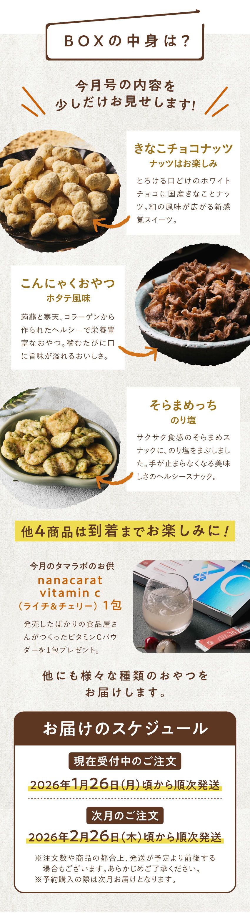 タマラボ \新ヘルシーおやつ便/【2月分】7種類のドキドキ・ワクワクをお届け♪ 毎月何が届くかお楽しみ! 定番からまだ未発売の商品まで楽しめる、タマチャンショップのしあわせおやつお届け便 栄養おやつ7種類 | おやつ スイーツ【2026年1月26日より順次発送】【送料無料】