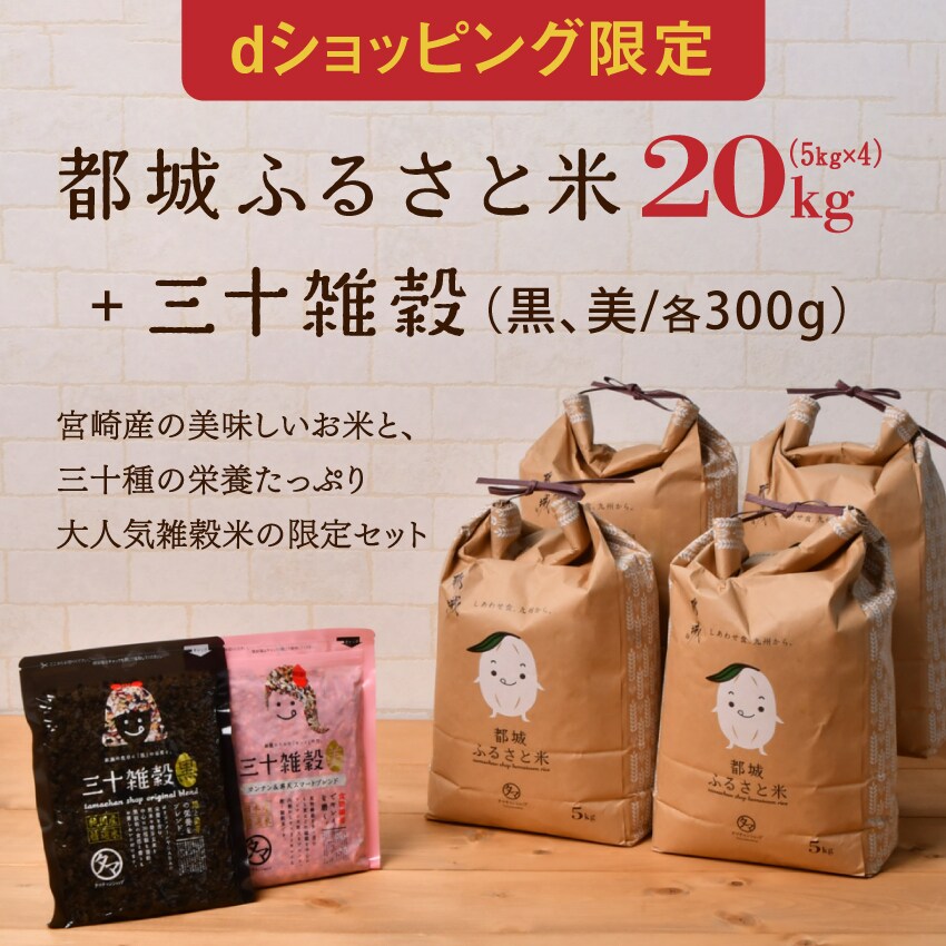 都城ふるさと米(精白米)宮崎産 まいひかり 20kg(5kg×4)+三十雑穀(黒、美/各300g)dショッピング限定セット 【送料無料】