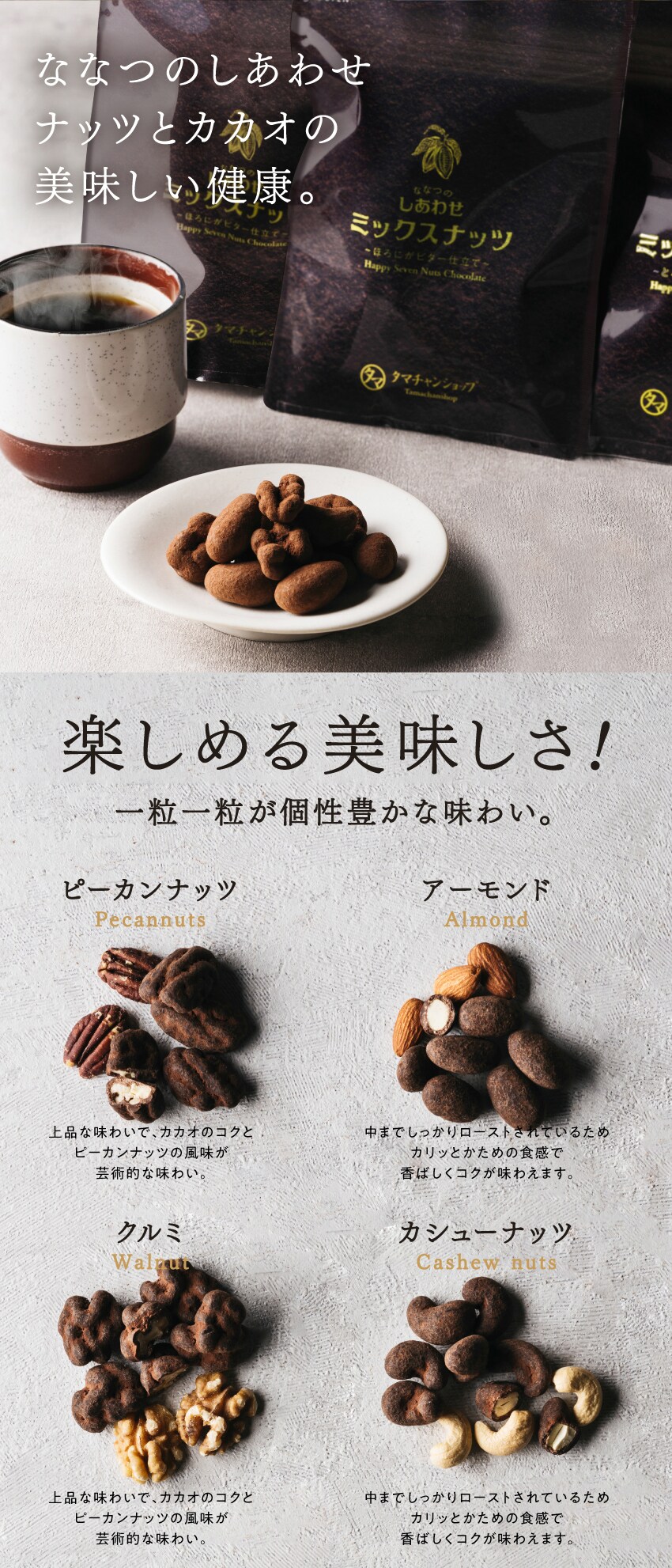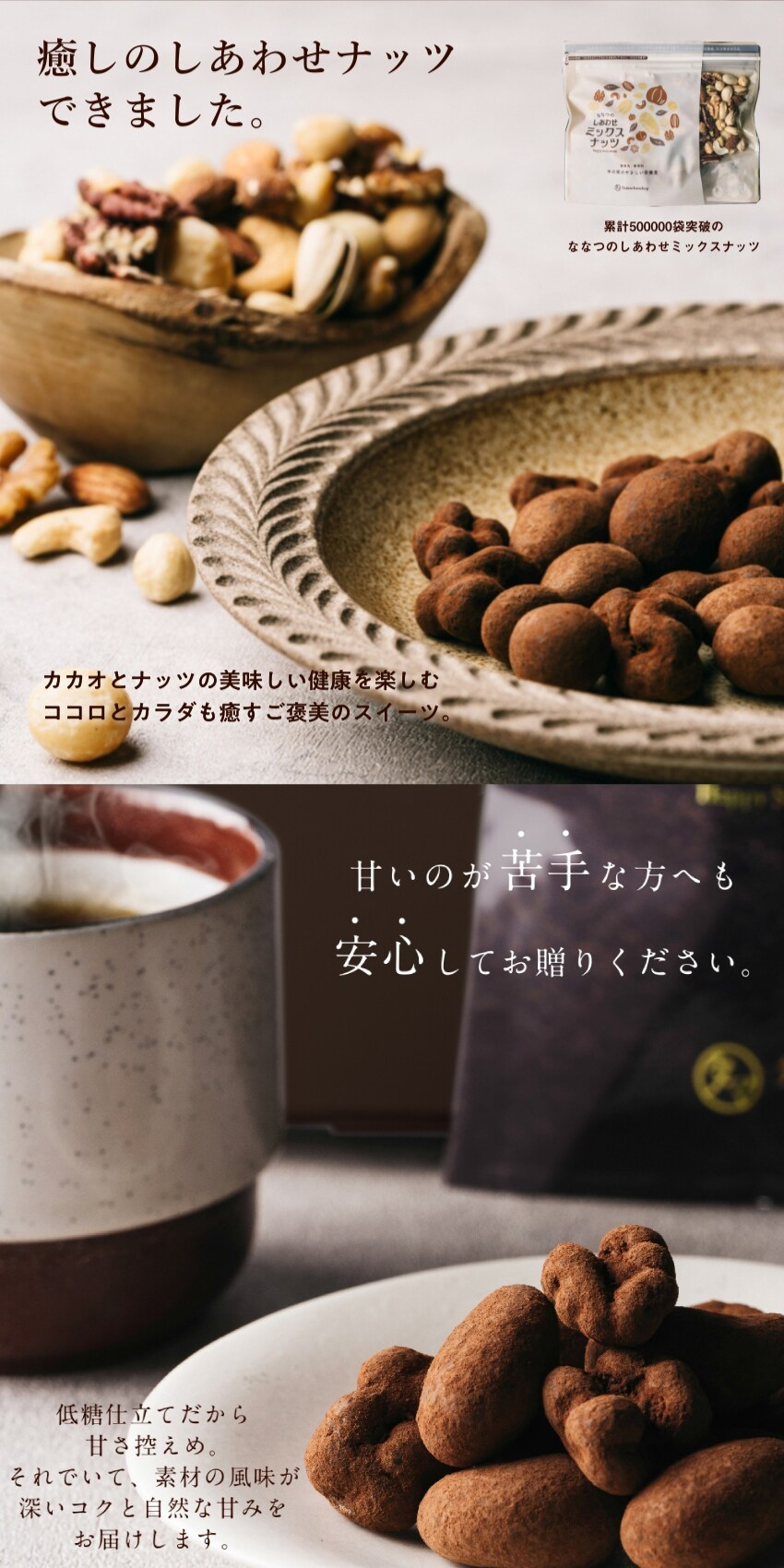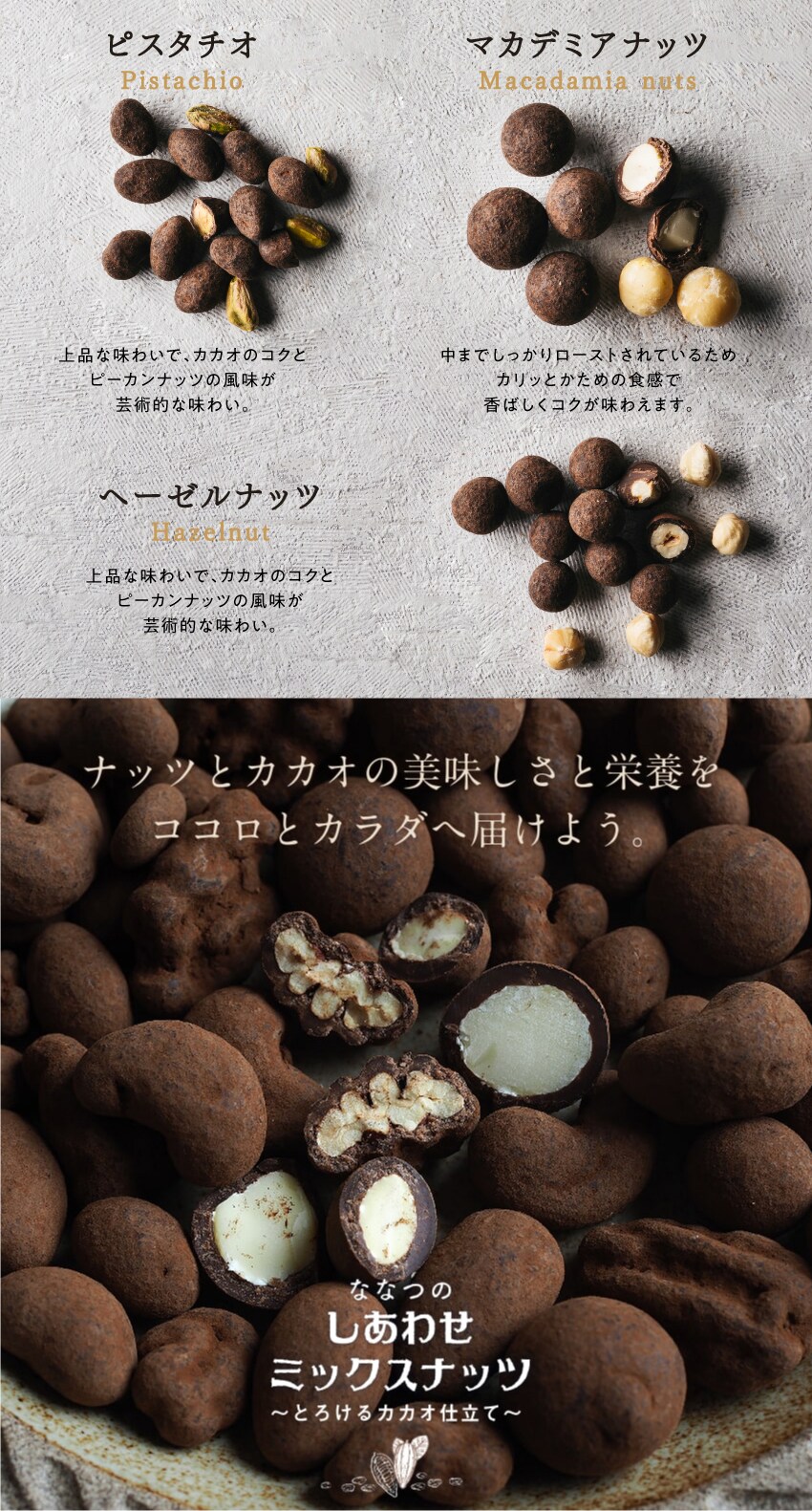 ななつのしあわせミックスナッツ チョコレート ほろにがビター仕立て2セット(70g×6袋) 7種のナッツとカカオ生まれの低糖仕立てスイーツ 低糖仕立て チョコレート ギフト アーモンド クルミ カシューナッツ マカデミア ピスタチオ ピーカンナッツ クール便 送料別