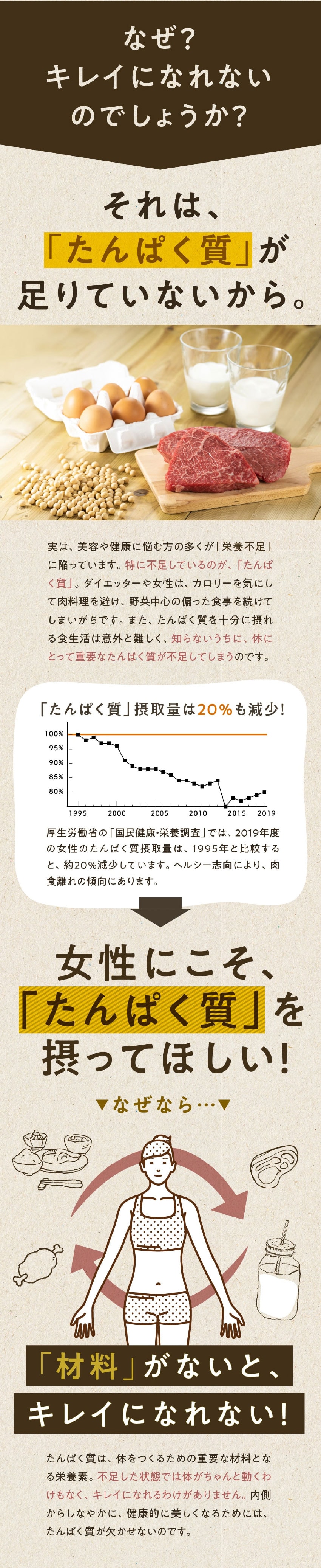 大豆たんぱく(国内製造)(分別生産流通管理済み)、乳清たんぱく、ココアパウダー、 海藻カルシウム、オリゴ糖、ビール酵母、りんごファイバー、 グルコマンナン、コラーゲンペプチド(鮭由来ゼラチン)、赤ワインエキス末、 アサイー末、カカオエキス末、乳酸菌(還元澱粉糖化物、乳酸菌)/ビタミンC、クエン酸、酸化マグネシウム、 甘味料(羅漢果抽出物)、ヘム鉄、香料、ナイアシン、コエンザイムQ10 、ヒアルロン酸、グルコン酸亜鉛、ビタミンE、パントテン酸カルシウム、ビタミンB1、ビタミンB6、ビタミンB2、ビタミンA、葉酸、ビタミンD3、ビタミンB12、(一部に大豆・乳成分・りんご・さけ・ゼラチンを含む)