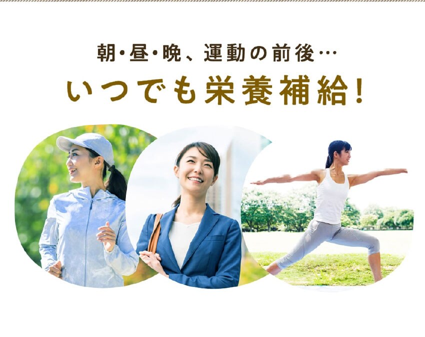 朝バナナ(ノンカフェイン) 大豆たんぱく(国内製造)(分別生産流通管理済み)、乳清たんぱく、バナナピューレ、デキストリン、海藻力ルシウム、オリゴ糖、 ビール酵母、 りんこファイバー、グルコマンナン、コラーゲンペプチド (鮭由来ゼラチン)、 赤ワインエキス末、アサイー末、カカオエキス末、乳酸菌(還元澱粉糖化物、乳酸菌)ビタミンC、クエン酸、酸化マグネシウム、甘味料(羅漢果抽出物)、ヘム鉄、香料、ナイアシン、コエンザイムQ10、ヒアルロン酸、グルコン酸亜鉛、ビタミンE、パントテン酸カルシウム、ビタミンB1、ビタミンB6、ビタミンB2、ビタミンA、葉酸、ビタミンD3、ビタミンB12、(一部に大豆・乳・さけ・バナナ・りんご・ゼラチンを含む)