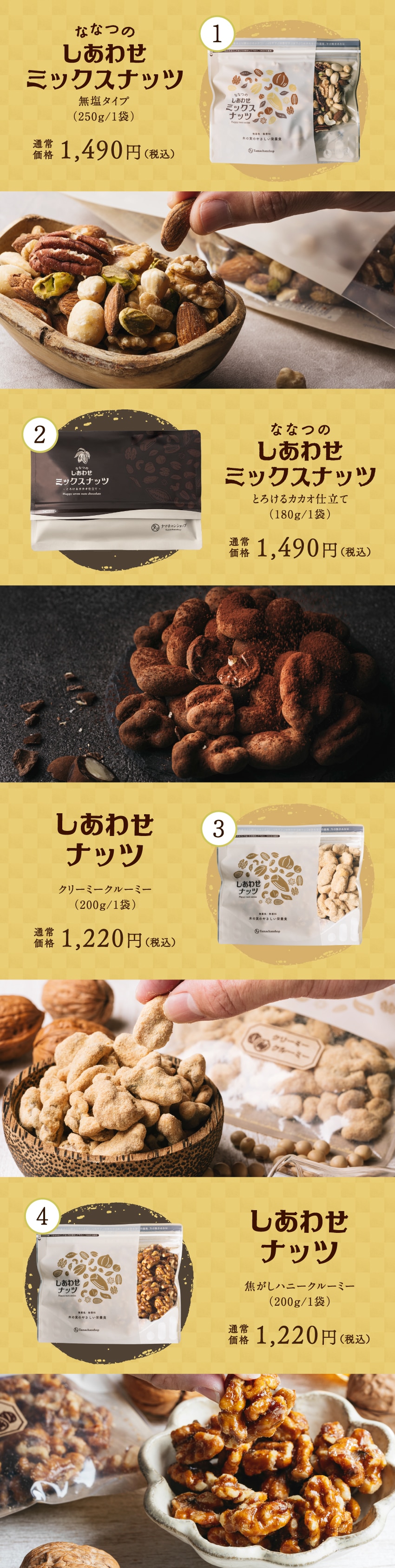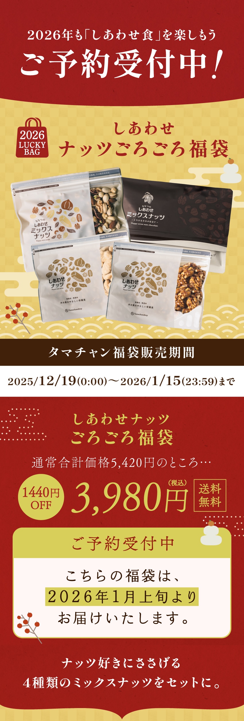 【2026年新春福袋】しあわせナッツごろごろ福袋 ミックスナッツ 無塩 (250g) /ミックスナッツ カカオ仕立て (180g) /クリーミークルーミー (200g) /焦がしハニークルーミー (200g) 5,420円相当 2026年1月上旬よりお届け【送料無料】のレビュー