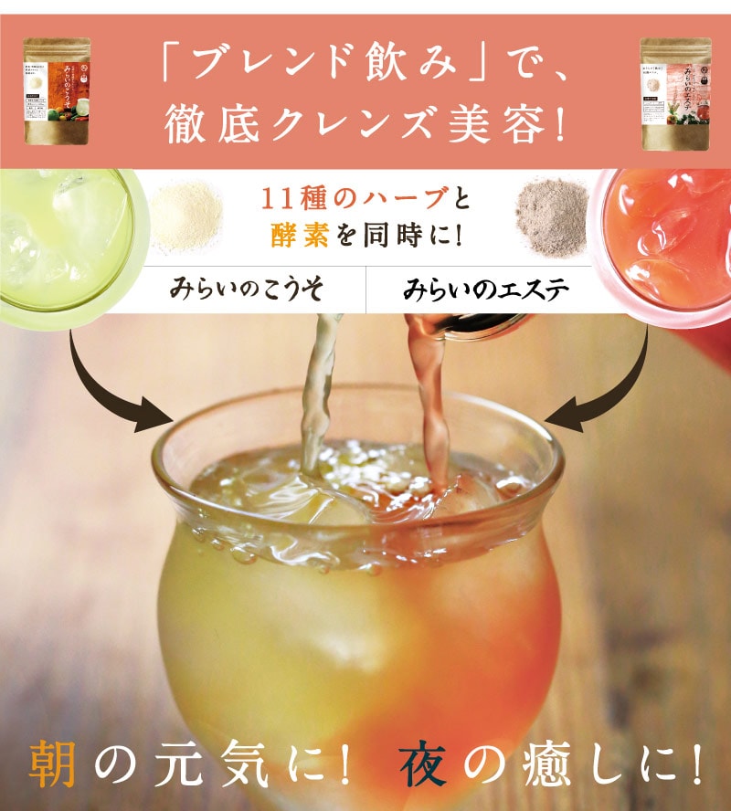 みらいのこうそ&みらいのエステ 徹底クレンズセット 季節の変わり目のストレスも酵素とハーブで美味しくケア 酵素 ハーブクレンズ 【通常合計5,780円→特別価格3,980円】 お一人様2セット迄 人工甘味料 着色料不使用 グルテンフリー メール便【送料無料】