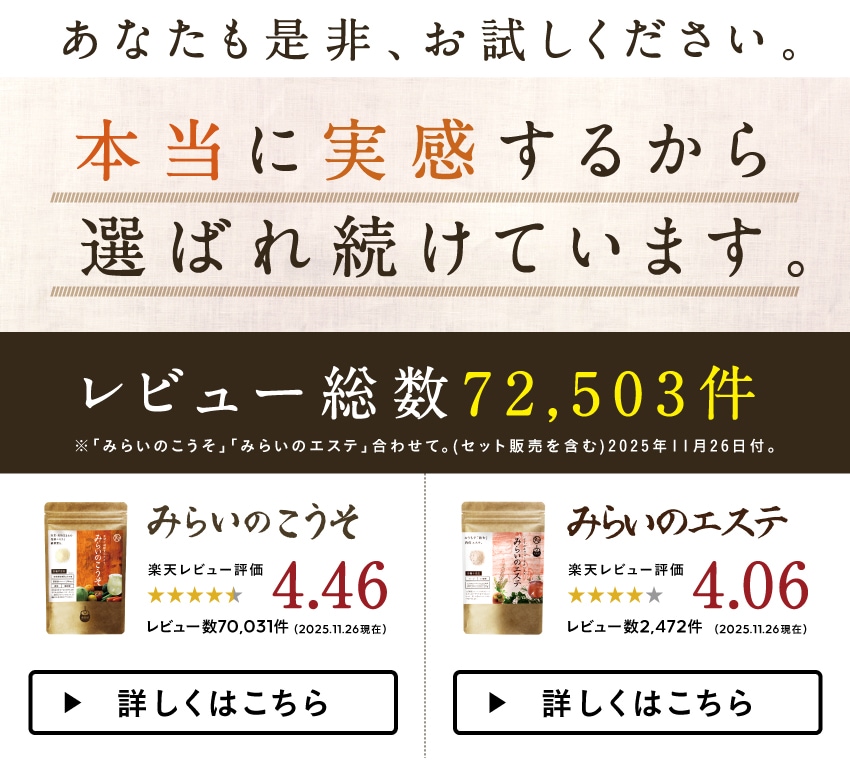 みらいのこうそ&みらいのエステ 徹底クレンズセット 季節の変わり目のストレスも酵素とハーブで美味しくケア 酵素 ハーブクレンズ 【通常合計5,780円→特別価格3,980円】 お一人様2セット迄 人工甘味料 着色料不使用 グルテンフリー メール便【送料無料】のレビュー