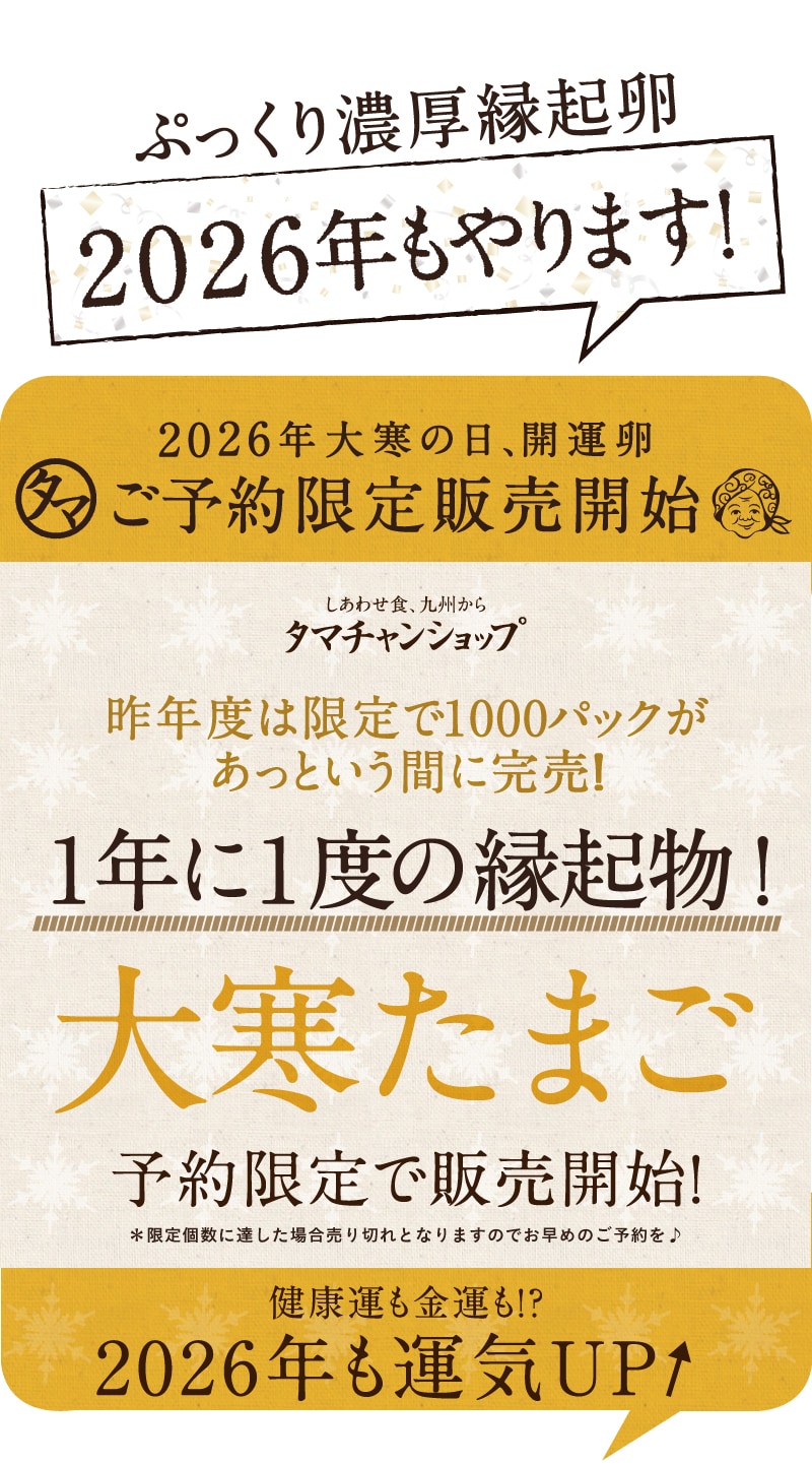 ■大寒の日(1月20日)前後のタマゴをお届け。