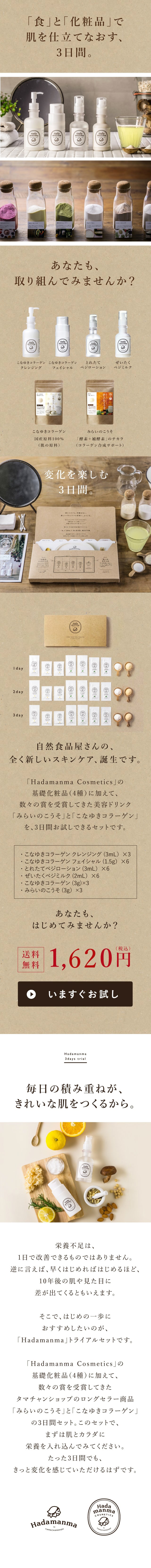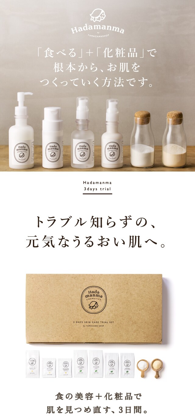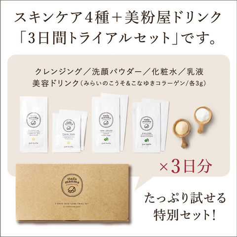 Hadamanmaトライアルセット 3日間のお試しスキンケア×美粉屋美容ドリンク粉末3日間分セット Hadamanma Cosmetics ハダマンマ 化粧品 コスメ お試しセット トライアルキット 送料無料 ギフト