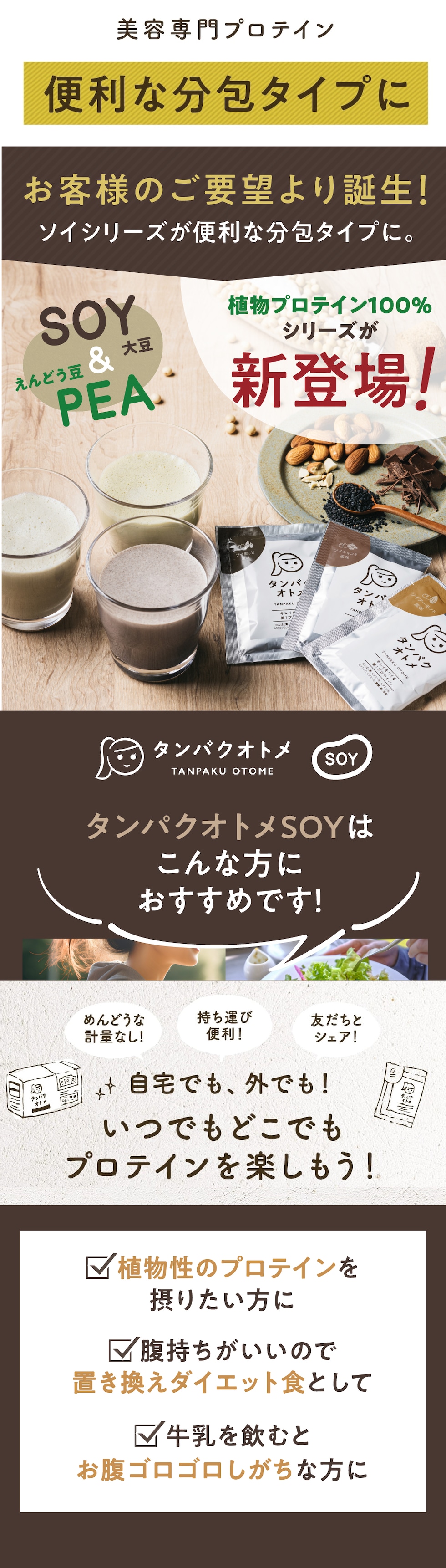 タンパクオトメ3日間お試しセット 休息プロテインセット 分包タイプ 15g× 3包 ソイ&ホエイプロテイン 栄養・美容成分をたっぷり配合 美容プロテイン 【送料無料】