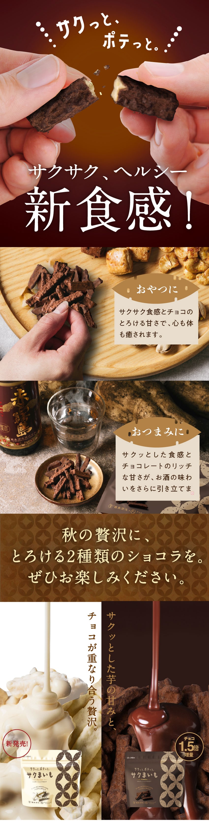 サクまいも (ミルキーショコラ仕立て) 60g サクサク食感のサツマイモに上質な濃厚カカオをコーティング プレミアムなサクまいも チョコ チョコレート バレンタイン お菓子 和菓子 おやつ メール便 送料無料