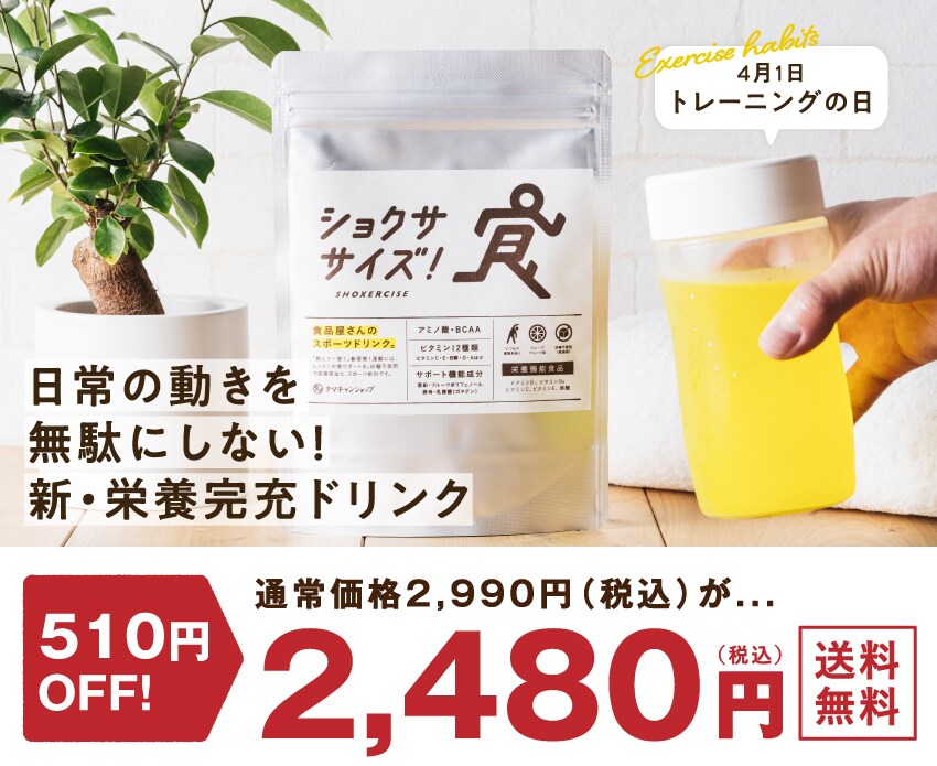 進化したスポーツ飲料「ショクササイズ」 スポーツはもちろん、日常の動きを「食」で内側から活かそう! 食品屋さんがつくった砂糖不使用のスポーツドリンク クエン酸×BCAA(ノンカフェイン) 送料無料 ギフト【4個迄メール便/5個~宅配便】※5個以上でシェイカー1個付