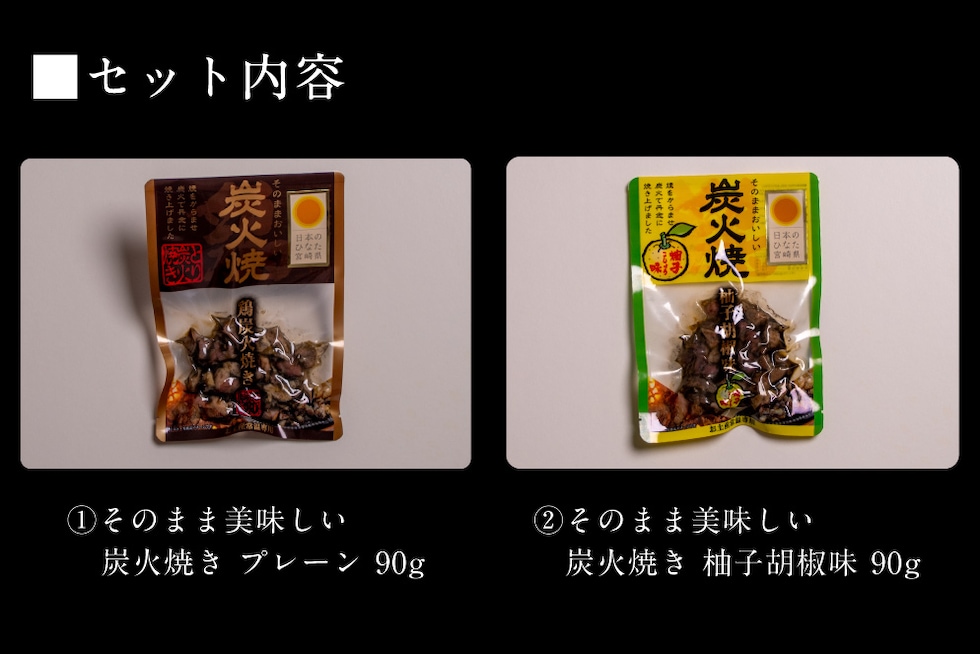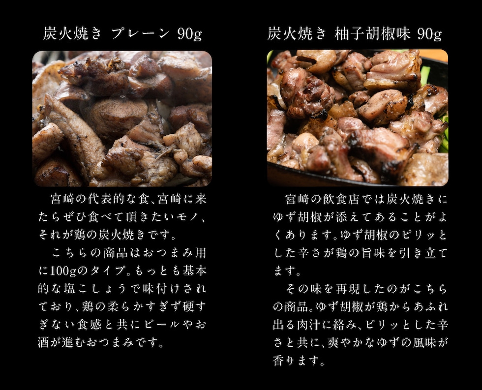 宮崎鶏の炭火焼2点食べ比べセット 1.鶏の炭火焼きプレーン 2.鶏の炭火焼き柚子こしょう味 |宮崎名物 おつまみ 鶏の炭火焼き 2点セット 食べ比べセット お土産 柚子こしょう 柚子胡椒 ギフト そのまま食べれる 鶏肉 地鶏 1000円ポッキリ【送料無料】【6個迄メール便/7個~宅配便】