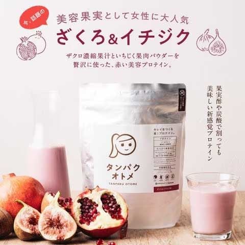 タンパクオトメ 【ざくろ&イチジク】美容専門プロテイン ホエイプロテインと大豆ソイプロテインをW配合。不足しがちなタンパク質と美容成分たっぷり、おきかえダイエットにもおすすめの低糖質プロテイン。※3個以上でシェイカー1個付 【送料無料】
