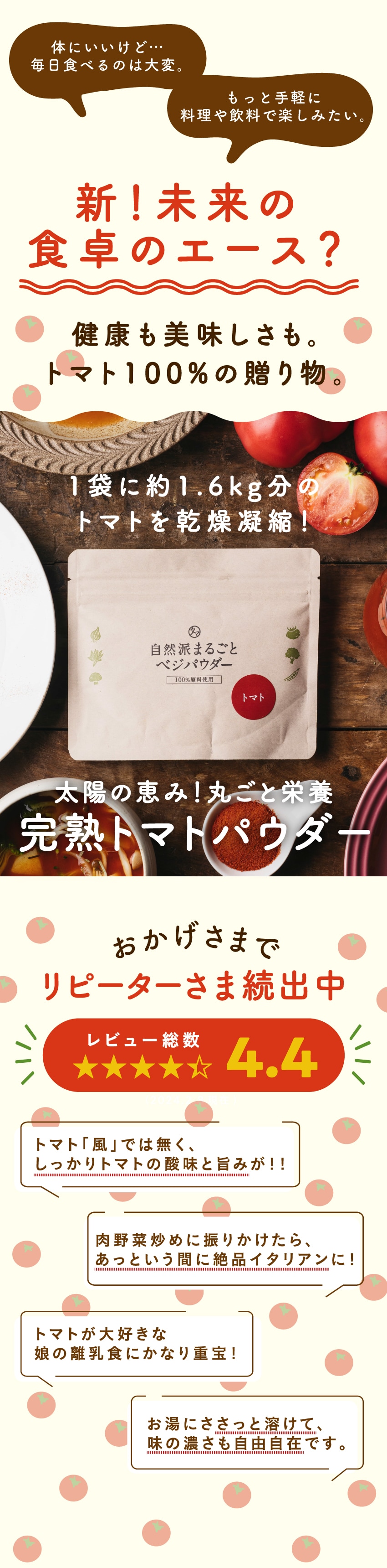 完熟トマトパウダー80g 無添加トマト粉末 生トマト約1.6kg分を乾燥粉末した高品質な トマトパウダーです。 料理やトマトジュースやスムージーなどにも幅広くお使いいただけます 無添加 野菜 パウダー 送料無料 メール便