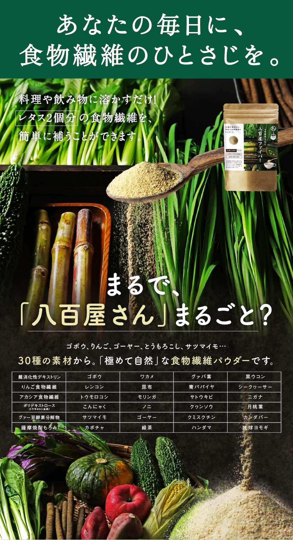 美粉屋 八百屋ファイバー 180g×3袋 食品屋さんがつくった30品目の食物繊維パウダー 水溶性食物繊維・不溶性食物繊維のダブル食物繊維を配合した自然素材生まれの食物繊維 Made in Japan 無香料 無着色 無糖 送料無料 ギフト