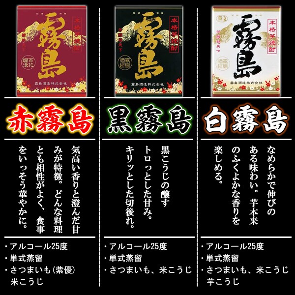 霧島酒造のど定番、3つの霧島をセットで!