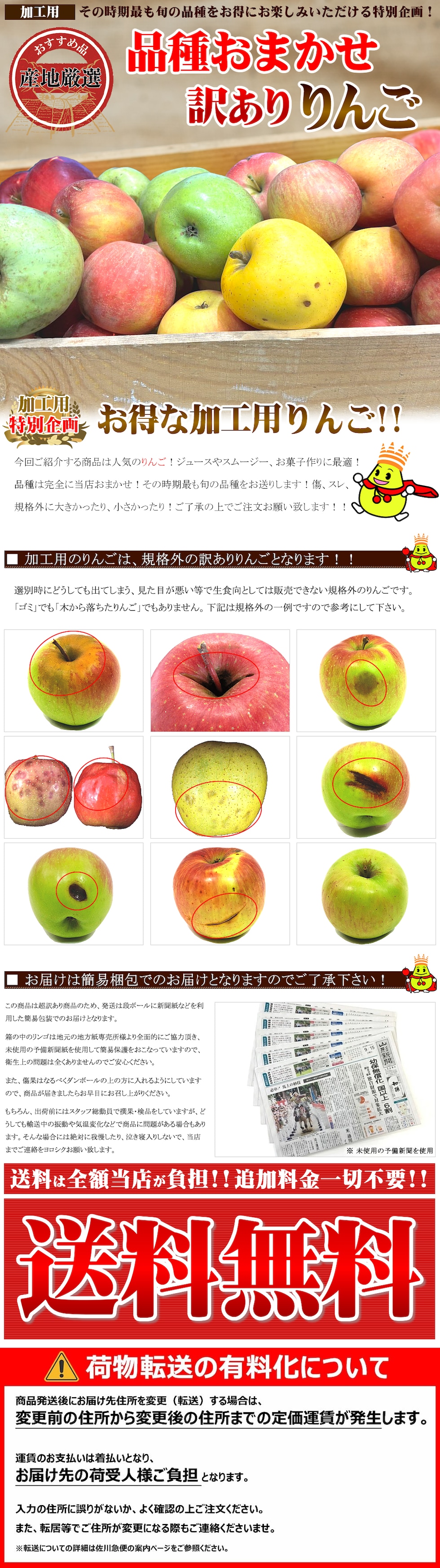 【出荷中】産地厳選 加工用 品種おまかせりんご 10kg(ご家庭用/22~60玉入り)