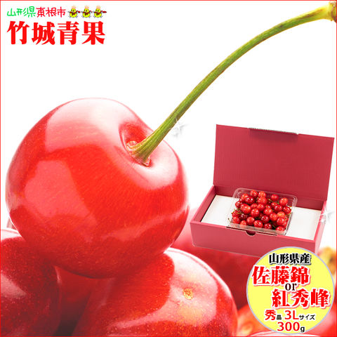 ■秀品(3Lサイズ):1箱 約300g ※お届けするさくらんぼは「佐藤錦」又は「紅秀峰」となります。お客様が品種をお選びする事はできません!どうぞご了承下さいませ。 ※専用化粧箱入り |