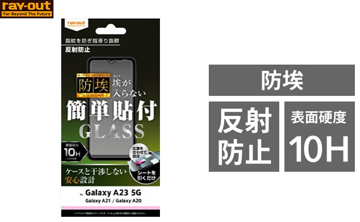 Galaxy A23 5G/A21/A20専用 ray-out レイ・アウト 画面保護ガラスフィルム 防埃 10H(反射防止)