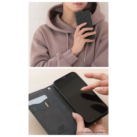 iPhone 14 Pro Max専用 New Balance/ニューバランス スエード手帳型ケース スタンプロゴ(ブラック)