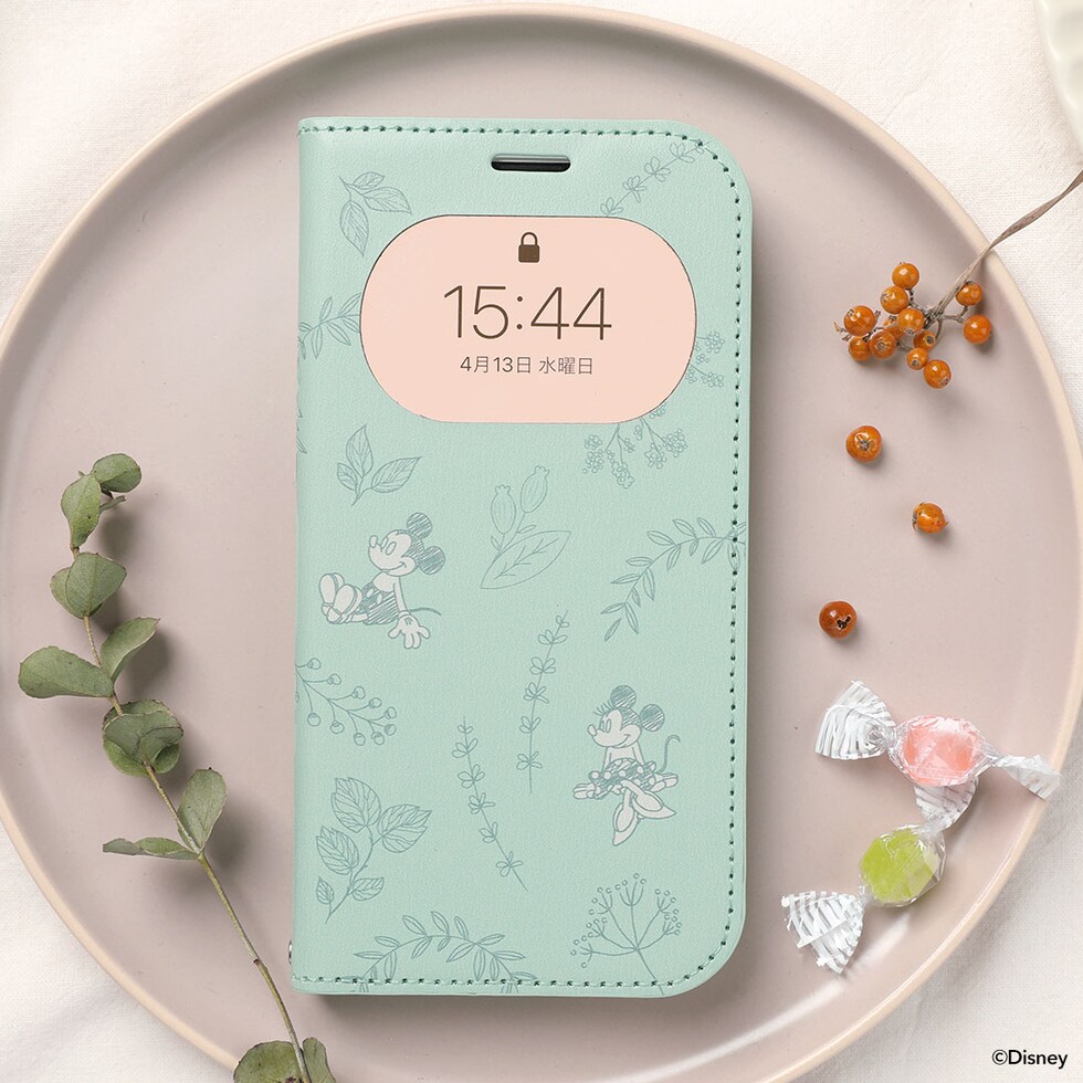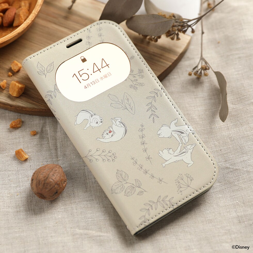 iPhone 14/13 専用ディズニーキャラクター/フリップ窓付きダイアリーケース(チップ&デール/ボタニカル)