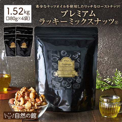 販売休止中【380g×4】プレミアムラッキーミックスナッツ オイルロースト (賞味期限2026/3/20迄) 送料無料 ナッツオイル使用 無塩 食塩不使用 4種 おつまみ 晩酌 リッチ 贅沢 訳あり(簡易梱包)