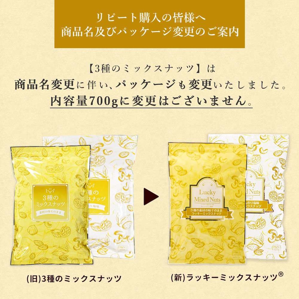 | 原材料名 | アーモンド、くるみ、カシューナッツ |