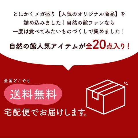 全20点入り⇒とにかくメガ盛り★【人気のオリジナル商品】をたっぷり詰め込みました!自然の館ファンなら一度は食べてみたいものづくしで集めました!