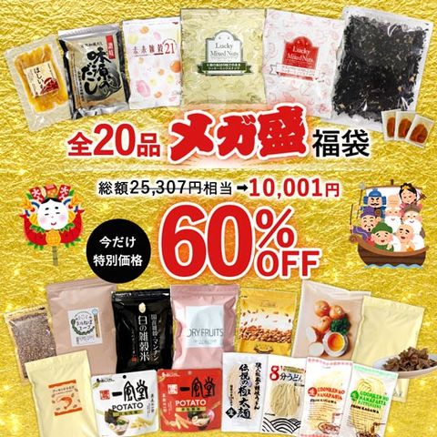 数量限定【60%OFF】全20品 メガ盛り福袋 送料無料 年末年始 福袋25 福袋26 訳あり(簡易梱包)