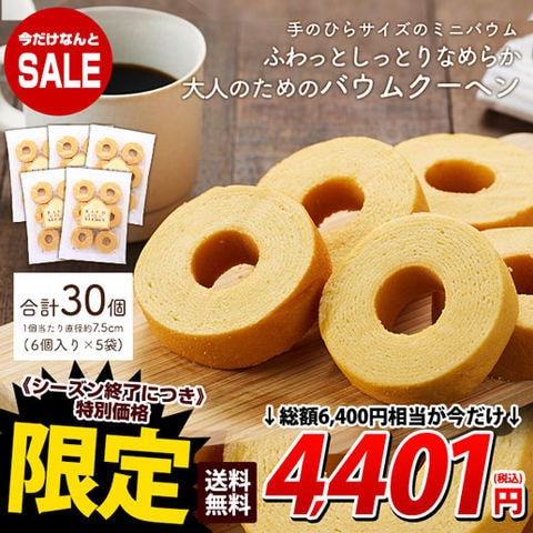 ★4/26迄セール★季節限定【6個入×5袋】ミニバウムクーヘン 常温便 送料無料 宅配便 ミニクーヘン ミニバーム 焼き菓子 菓子 おつまみ 軽食 朝ごはん パン 紅茶 コーヒー 4gw