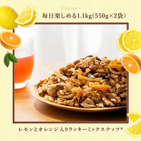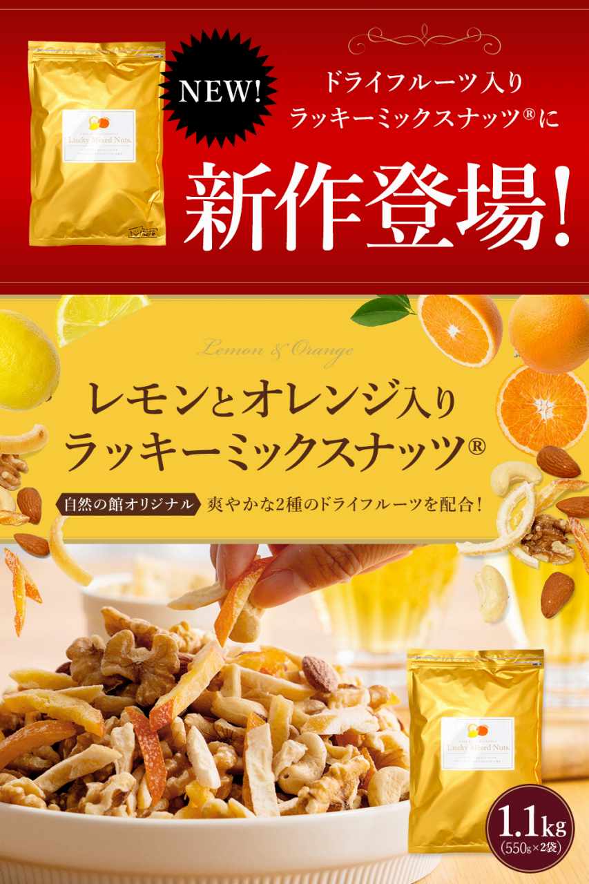 ★12/10★24時間セール&ポイント40倍★数量限定【1.1kg(550g×2)】レモンとオレンジ入りラッキーミックスナッツ 送料無料 無塩 ナッツ レモンピール オレンジピール トレイルミックス 訳あり(簡易梱包)