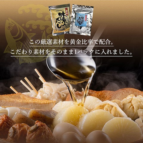 贅沢に配合した高級食材である「飛魚」で、いつもの料理がリッチに、風味・コクも格段にアップしたお出汁が取れます。
