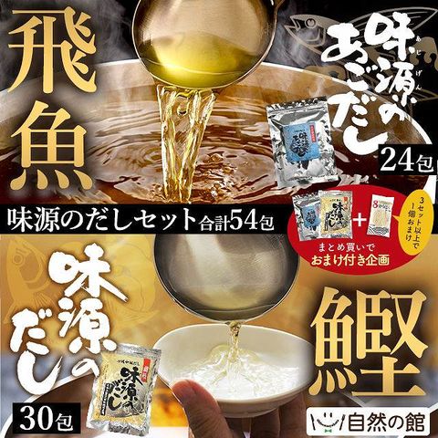▼味源のだし 30包&味源のあごだし 24包▼【NEW】味源のだしシリーズに「味源のあごだし」が新登場! 贅沢に配合した高級食材である「飛魚」で、いつもの料理がリッチに、風味・コクも格段にアップしたお出汁が取れます。