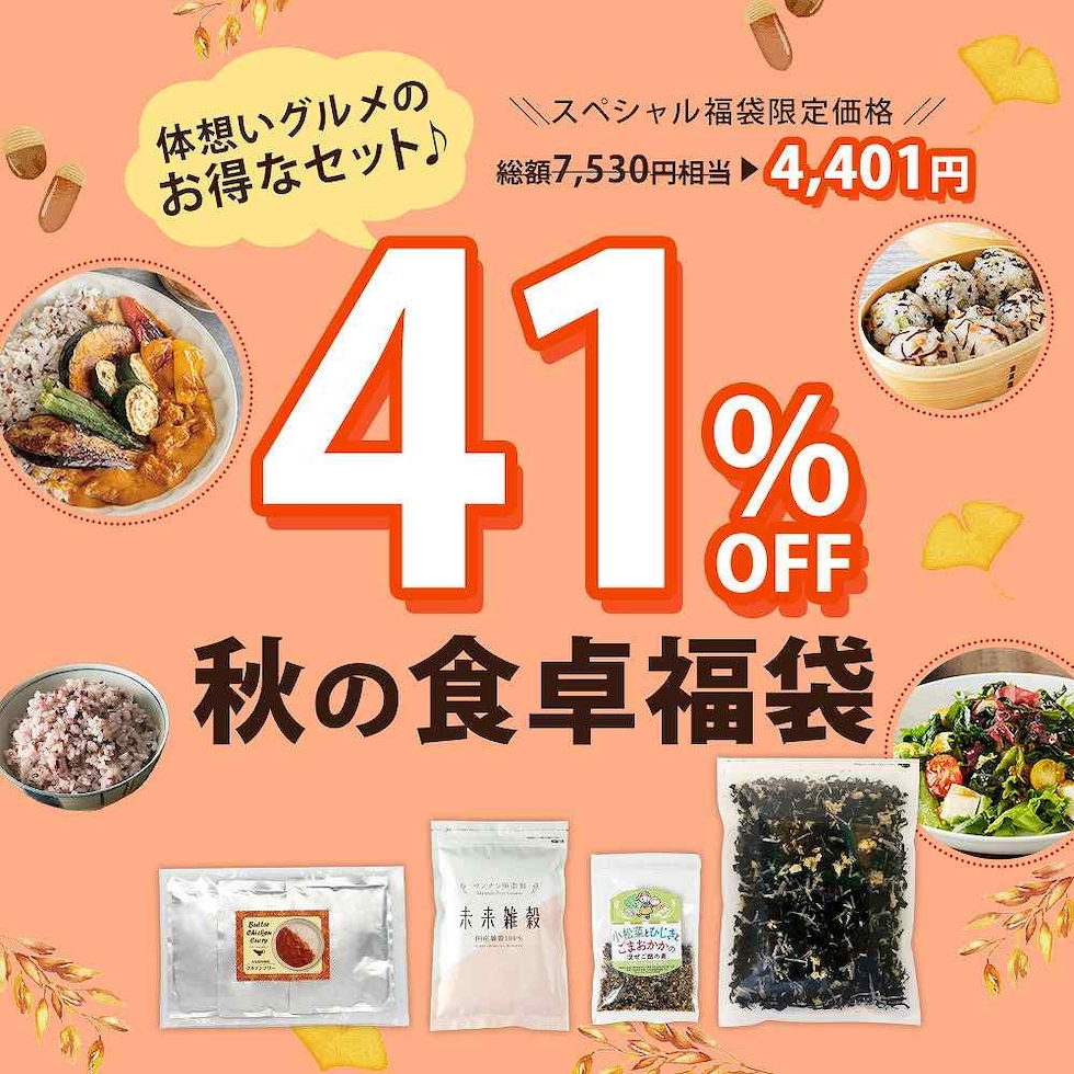 完売 総額7651円相当のところ福袋限定価格 全4品 秋の食卓福袋 送料無料 未来雑穀(マンナン無添加) 寒天海藻サラダ 混ぜご飯の素(小松菜とひじきとごまおかか:賞味期限26/1/19) バターチキンカレー(グルテンフリー) 宅配便 訳あり(簡易梱包)