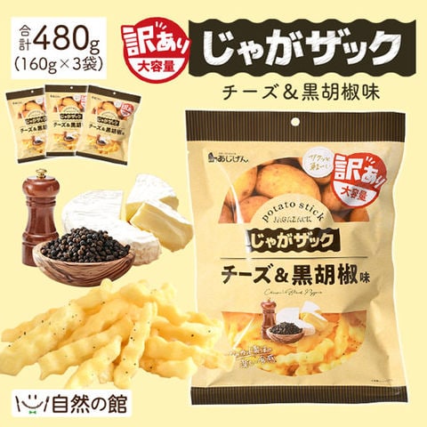 【チーズ&黒胡椒味】じゃがザック 160g×3個 送料無料 味源 メーカー直販 クリンクルポテト ポテトスティック じゃがスティック ビール おつまみ お菓子 訳あり(簡易梱包) あじげん