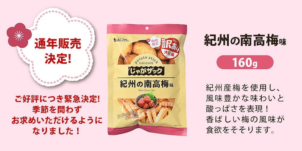 ホタテのうまみ成分を加えて、一味違った塩味で味付け。シンプルな味付けなのでじゃがいものおいしさが口いっぱいに広がります。