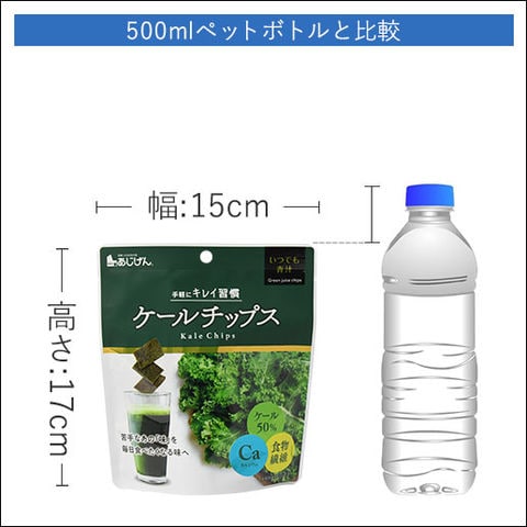 | 原材料名 | ケール、でん粉(タピオカ、トウモロコシ)、砂糖、植物油、うま塩シーズニング、食塩/調味料(アミノ酸等)、カラメル色素、(一部に小麦・大豆を含む) |