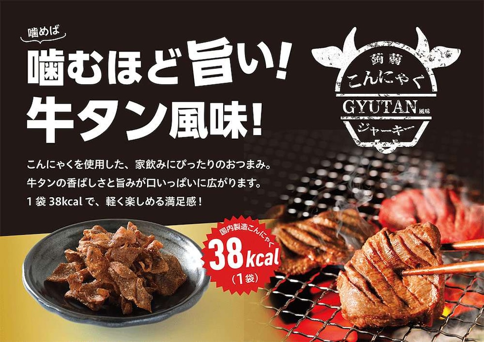 乾燥こんにゃくを牛タン風味に仕上げました。噛むほどに深い味わいでまるで牛タンを食べているような美味しさです。