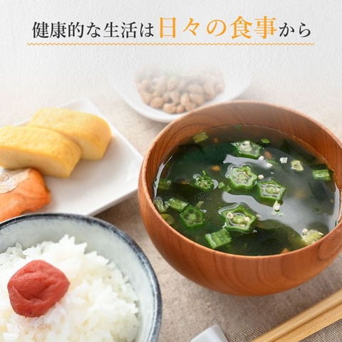 | 原材料名 | オクラ粉末、食塩、乳糖、麦芽糖、寒天、砂糖、オニオンエキス末、たん白加水分解物、酵母エキス末、かつおエキス末(デキストリン、かつおエキス、食塩、魚醤(魚介類)、かつお節エキス)、昆布エキス末、昆布粉末、粉末白しょうゆ、明日葉粉末、モロヘイヤ粉末、椎茸エキス末、粉末油脂、うきみ・具(乾燥わかめ(湯通し塩蔵わかめ、デキストリン、食塩)(中国製造)、乾燥おくら(おくら、食塩)、乾燥人参(人参、ぶどう糖)、きざみねぎ)/調味料(アミノ酸等)、増粘剤(キサンタンガム)、加工デンプン、(一部に小麦・乳成分・大豆・豚肉・魚醤(魚介類)を含む) |