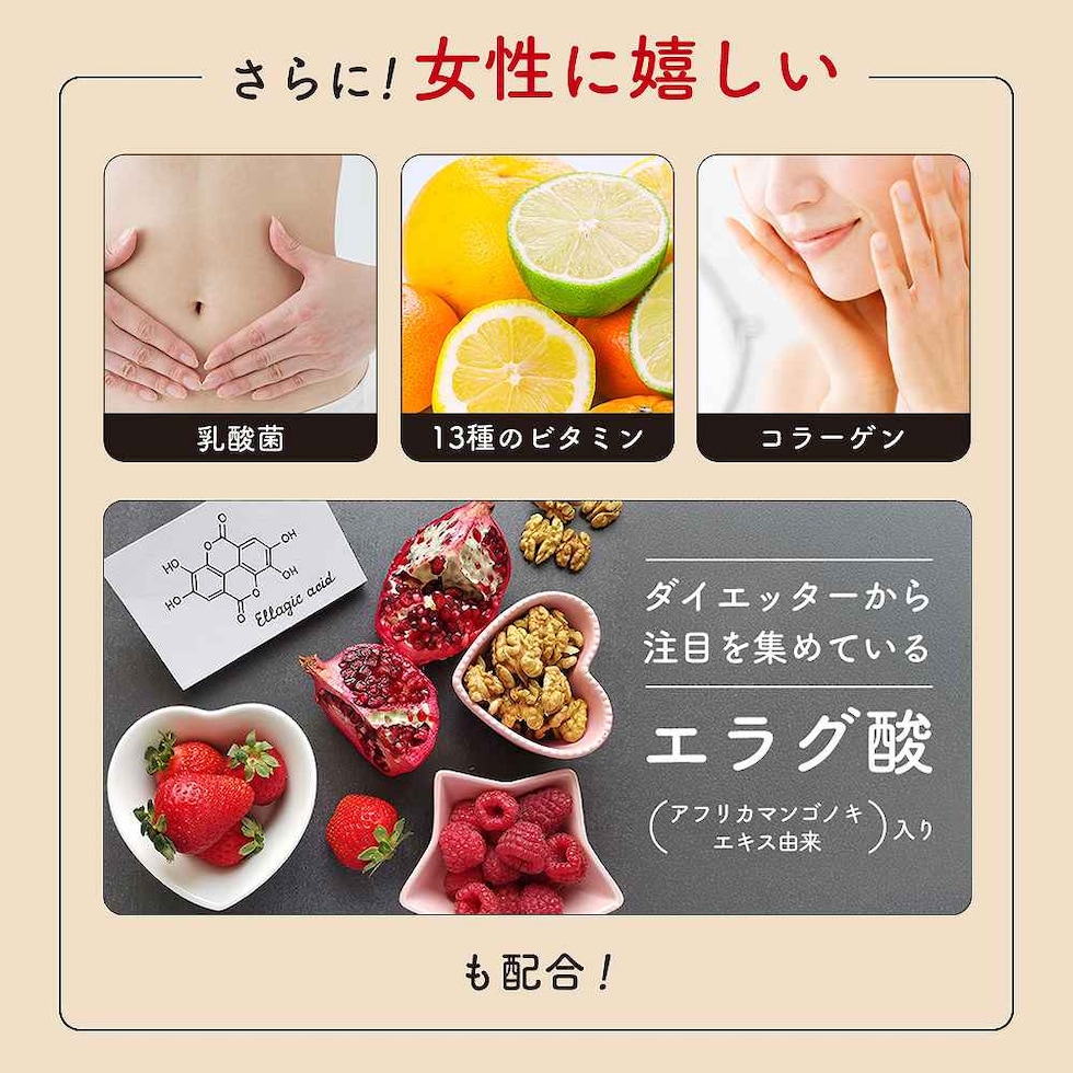 13種のビタミン、乳酸菌&コラーゲン、食物繊維もたっぷり配合。