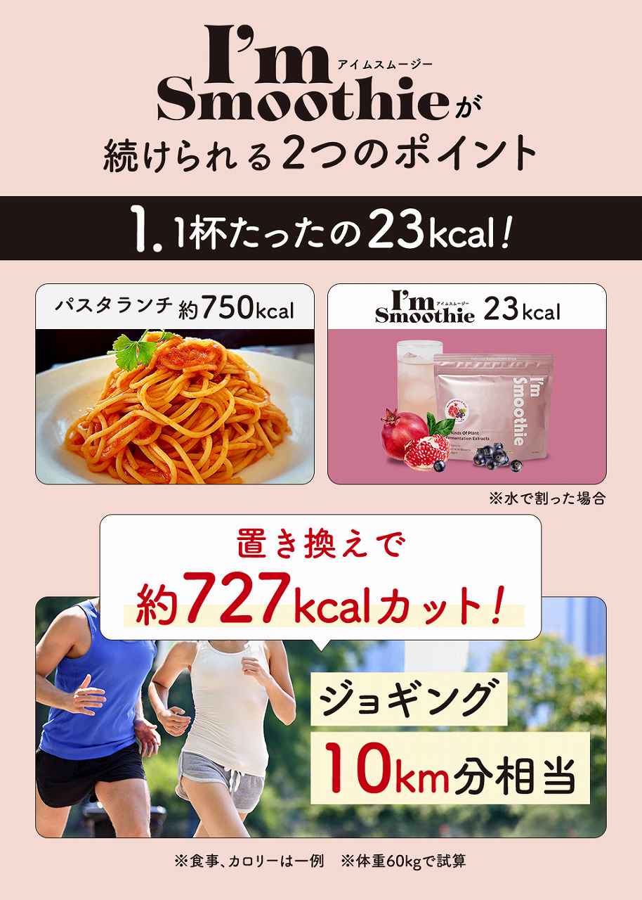 パスタランチ約750kcalをI'm Smoothieに置き換えると、727kcalカットに成功!