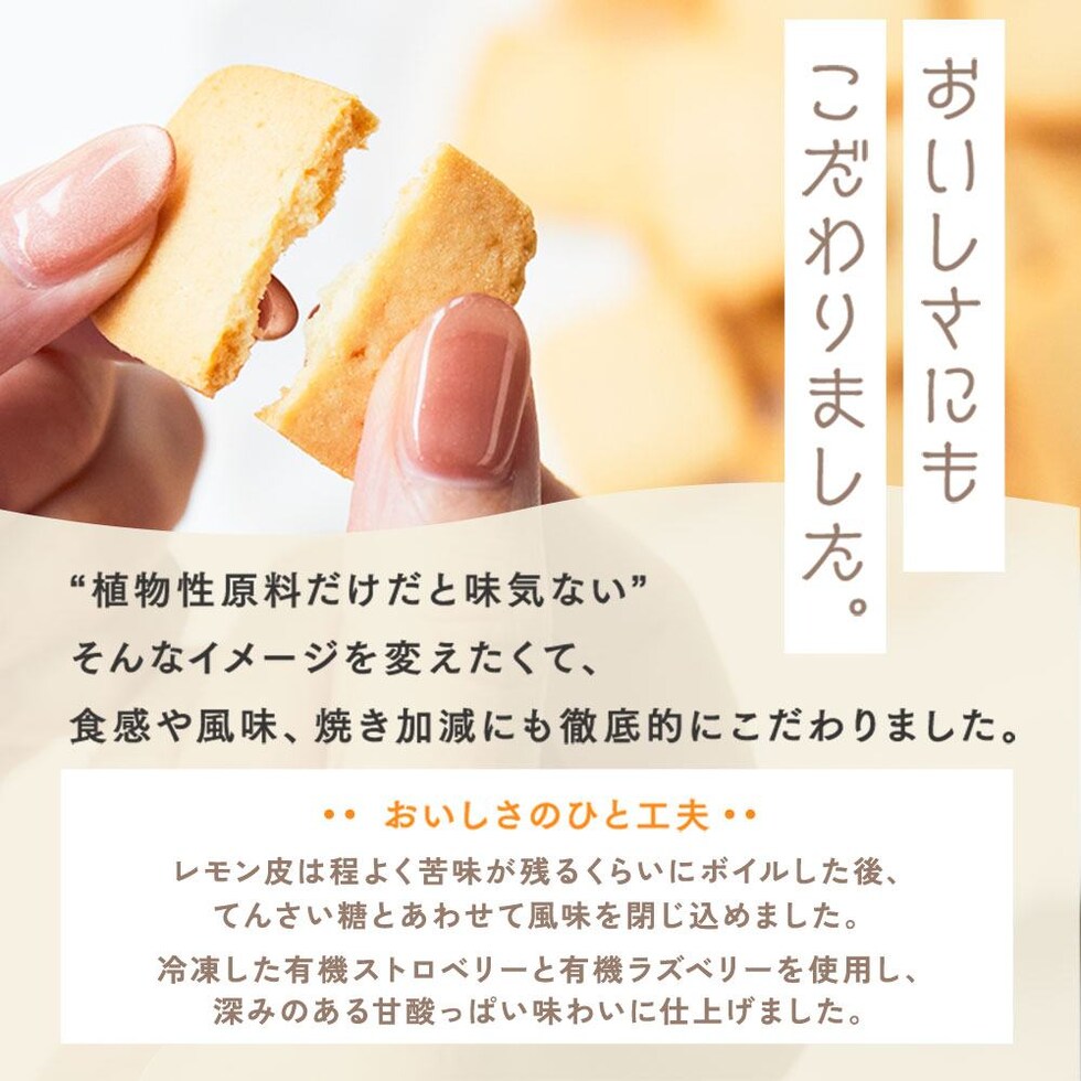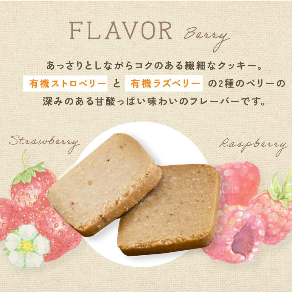 あっさりとしながらコクのある繊細なクッキー。ストロベリーとラズベリーの甘酸っぱい香りと爽やかな酸味が広がる【ベリー風味】をご用意しました。