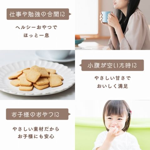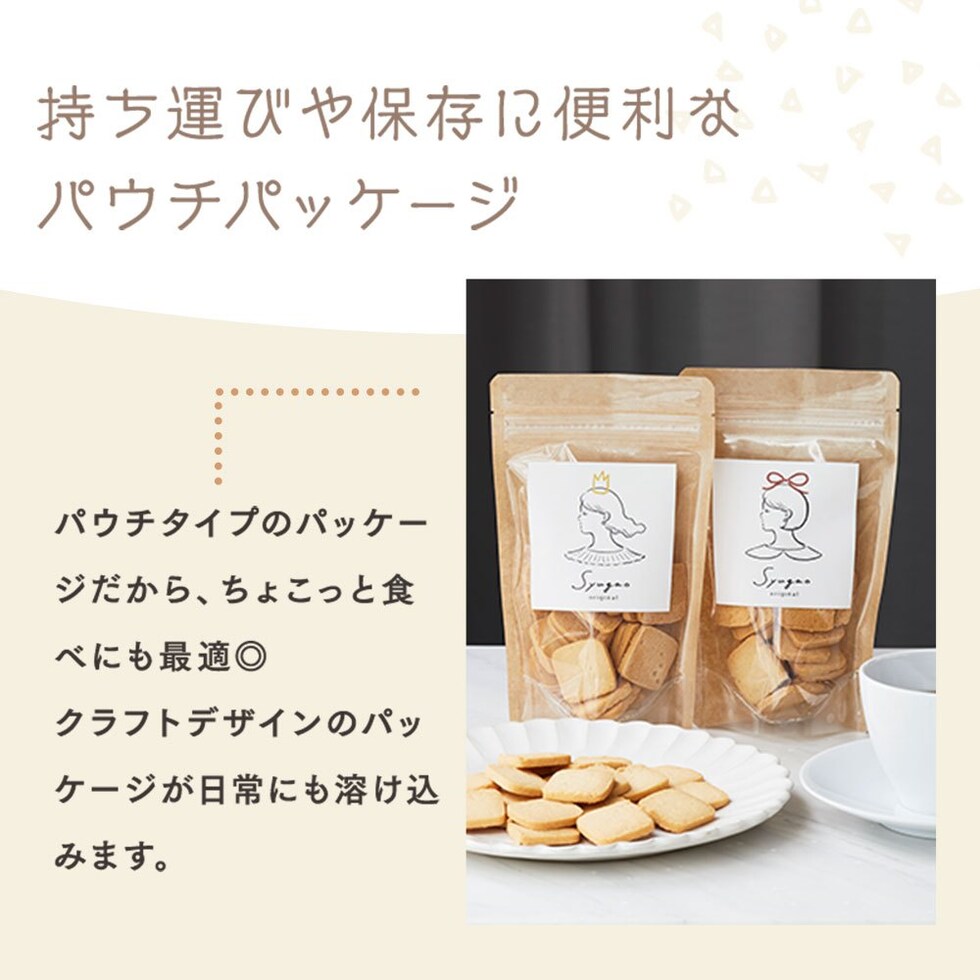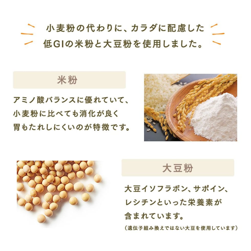 小麦・乳(バター)・卵・膨張剤不使用で専用ラインで製造しております。 植物性原料のみ使用で、ヴィーガンの方にもおすすめです。 もち運びにも便利な便利なチャック付き袋!