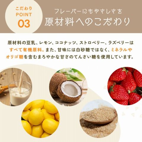 | 原材料名 | 米粉(米(国産))、てんさい糖、食用なたね油、大豆粉(大豆(国産))、有機ストロベリー、有機ラズベリー、有機ココナッツパウダー、有機豆乳、食塩 原材料に含まれるアレルギー物質・特定原材料及びそれに準ずるもの:大豆(専用ラインで製造) |