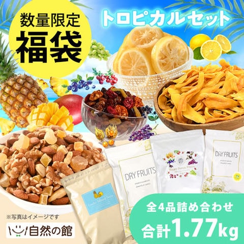 総額8038円のところ福袋限定価格 全4品 トロピカル福袋 合計1.77kg 送料無料 ドライフルーツ 紅塩ドライレモン パインとマンゴー入りラッキーミックスナッツ ハッピーセブンフルーツ タイ産ドライマンゴー おつまみ 訳あり(簡易梱包)