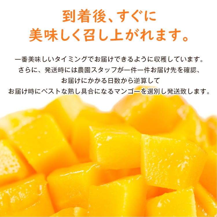 ジューシーでとろけるような舌触りの、甘ーいマンゴーをご賞味ください。