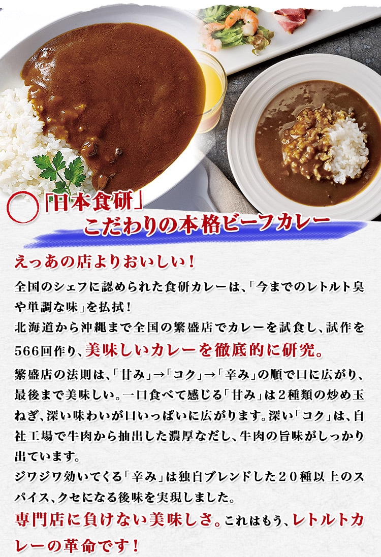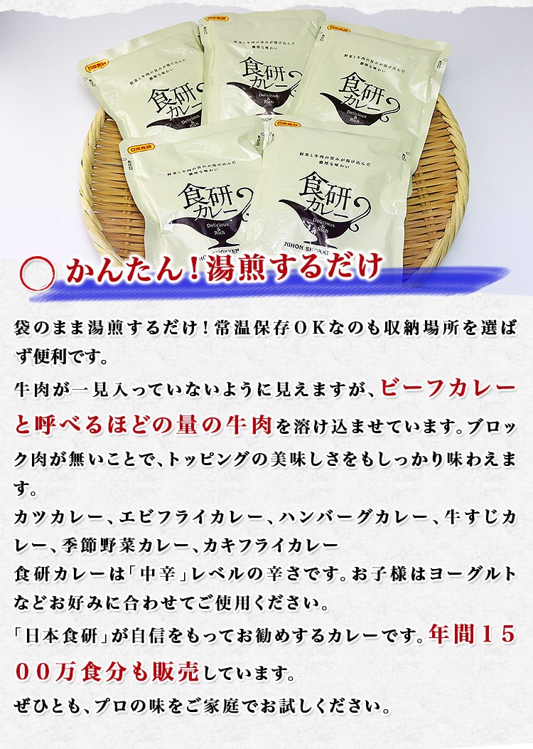 「日本食研」が自信をもってお勧めするカレーです。年間1500万食分も販売しています。
