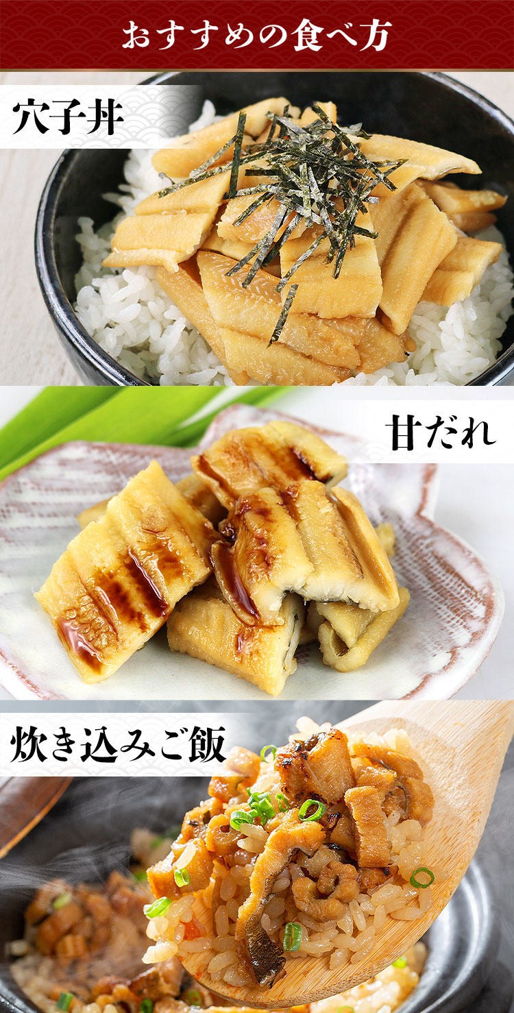 真穴子(中国産)、砂糖、醤油、酒、みりん、昆布、生姜、食塩、(一部に小麦・大豆を含む)