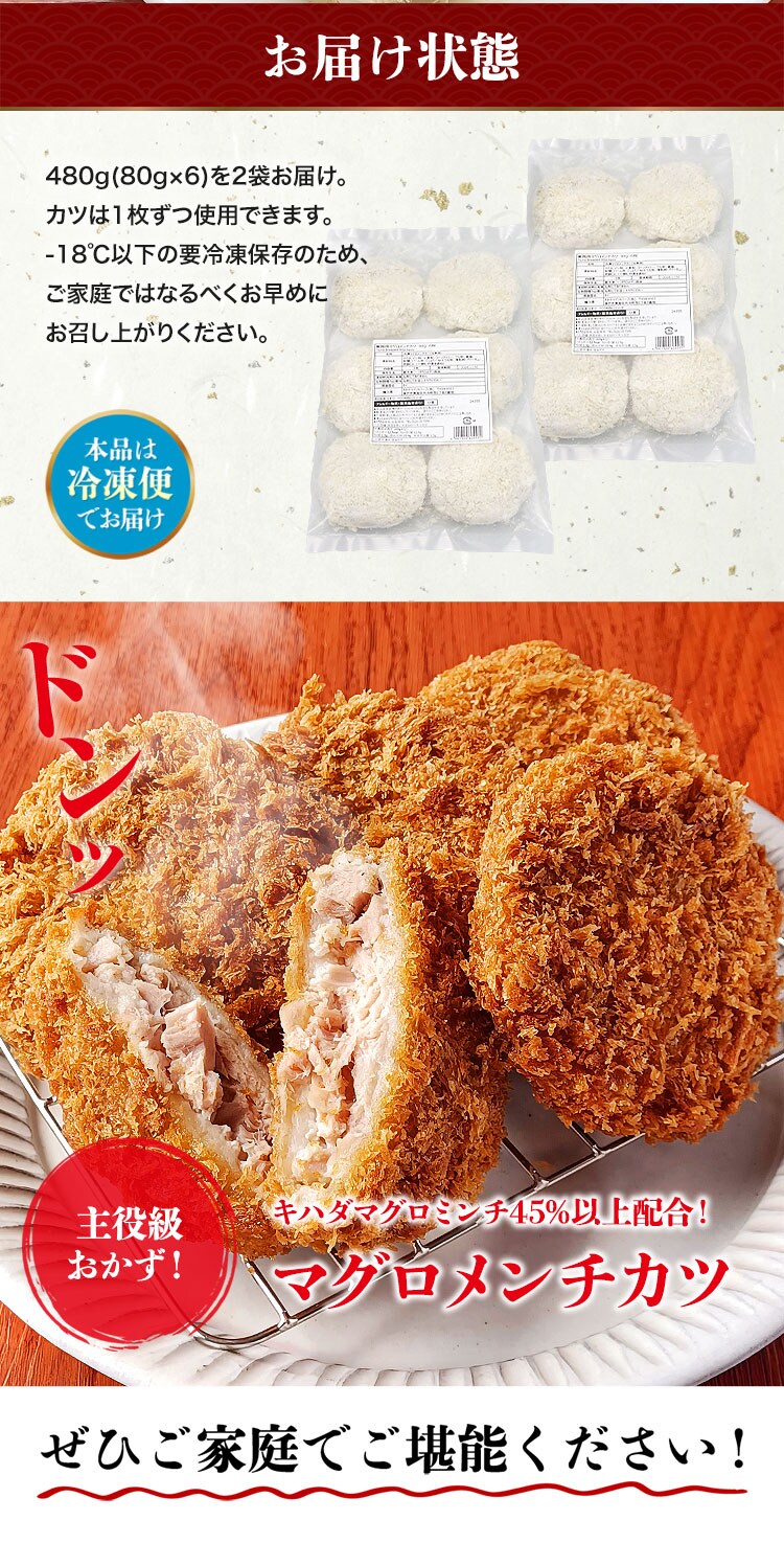 マグロ メンチカツ 480g(80g×6)×2 合計960g 鮪 まぐろ かつ メンチ カツ 魚 揚げ物 惣菜 揚げるだけ【最安挑戦!2880円→400円OFF★2480円セール】