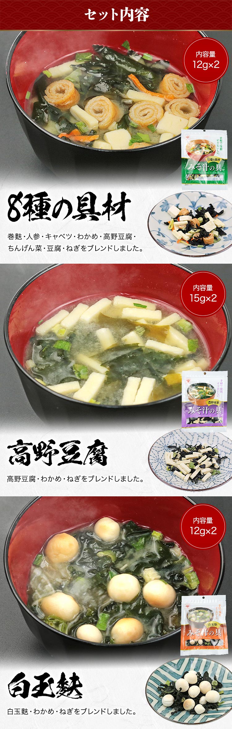 みそ汁の具(8種の具材)
