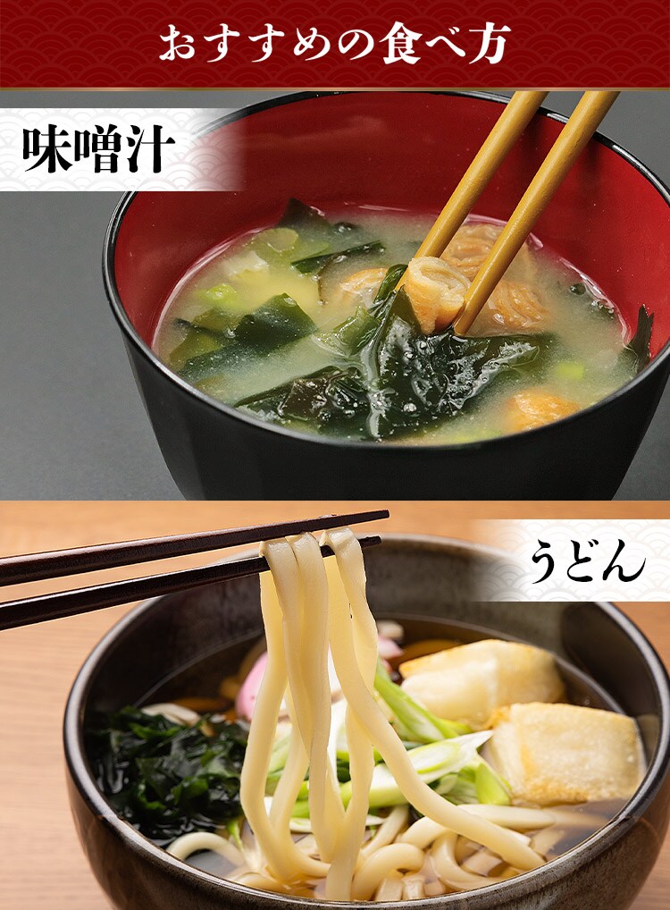 みそ汁はもちろん、お吸い物やうどん・そばなどの麺類の具材としてもおすすめ。