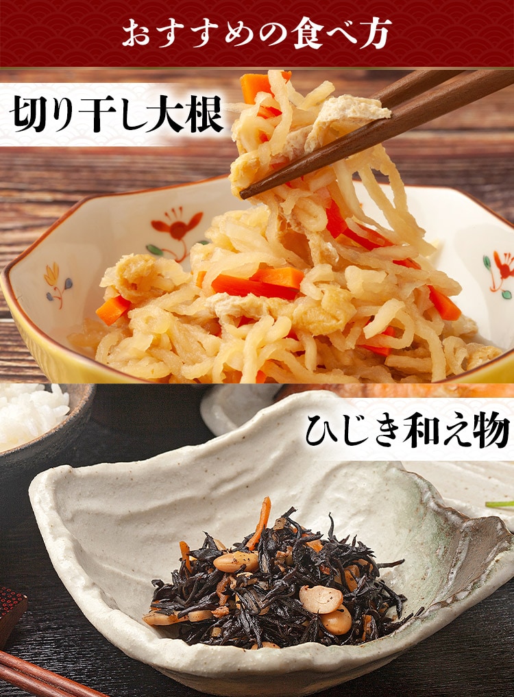 大根(中国産)、乾燥人参(人参、ぶどう糖)、茎わかめ